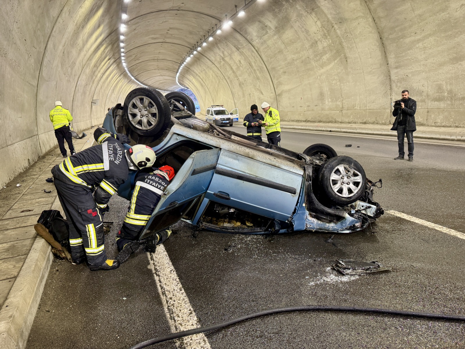 Trabzon’un Ortahisar ilçesinde sabah saatlerinde meydana gelen trafik kazasında, bir otomobil tünel içinde devrildikten sonra alev aldı. Kazada araç sürücüsü S.D. (30), kazanın hemen ardından kendi imkânlarıyla yanan araçtan çıkmayı başardı. Yaralı sürücü, sağlık ekipleri tarafından hastaneye kaldırılarak tedavi altına alındı. Yangın, olay yerine sevk edilen itfaiye ekiplerinin hızlı müdahalesiyle kontrol altına alındı. Kaza sonrası bir süre trafiğe kapatılan Bahçecik Tüneli, aracın çekilmesinin ardından tekrar ulaşıma açıldı.