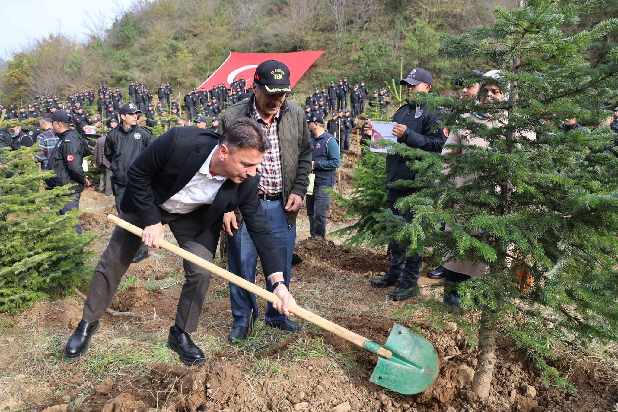 Trabzon’un Maçka İlçesinde şehitlerimiz için fidan dikildi. Vali Aziz Yıldırım ile Belediye Başkanı Dr. Koray Koçhan, fidanları toprakla buluşturdu. Başkan Koçhan, “Şehitlerimizin aziz hatırasını yaşatmak ve yarınlara daha yeşil bir Maçka bırakmak için çalışmaya devam edeceğiz” dedi.