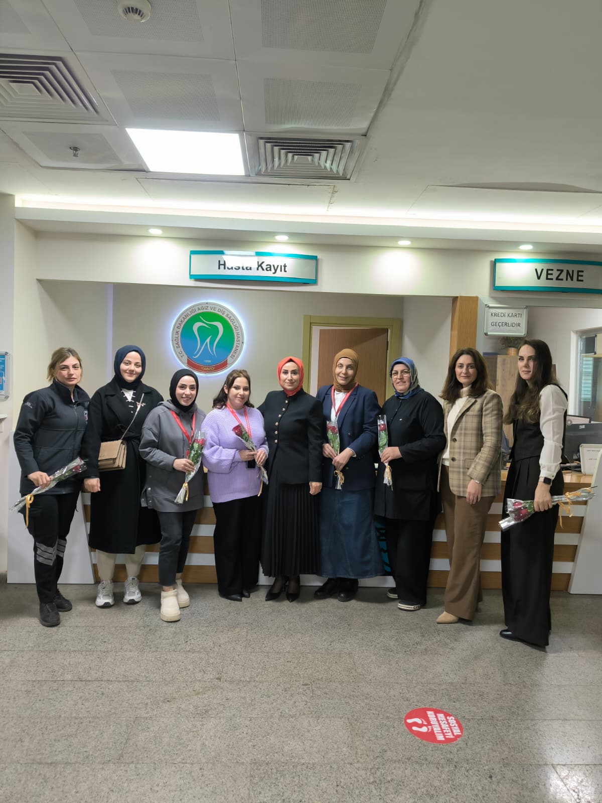 AK Parti Trabzon İl Kadın Kolları Başkanı Ayfer Cihan ve yönetim kurulu üyeleri, 29 Kasım Tıbbi Sekreterler Günü dolayısıyla Trabzon Ağız ve Diş Sağlığı Hastanesi’ni ziyaret etti. Başkan Cihan ve beraberindeki heyet, Başhekim, başhekim yardımcıları ve hastane müdürü ile bir araya gelerek sağlık çalışanlarının emeklerine dair görüş alışverişinde bulundu.