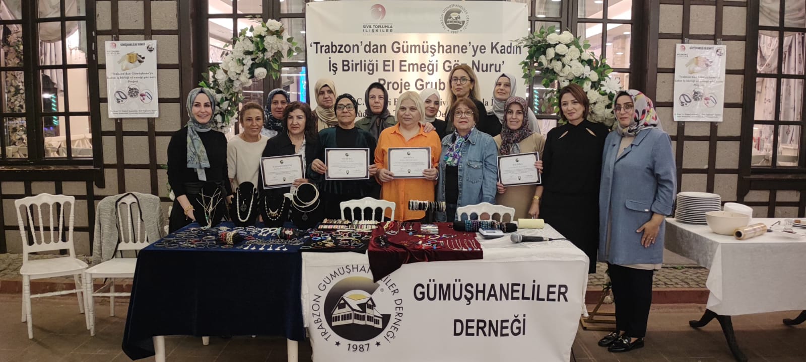 Trabzon Gümüşhaneliler Derneği tarafından düzenlenen ve İçişleri Bakanlığı tarafından desteklenenen" Trabzon'dan Gümüşhane'ye Kadın İşbirliği El Emeği Göz Nuru" projesinin final programı yapılırken katılımcılara sertifikaları verildi..