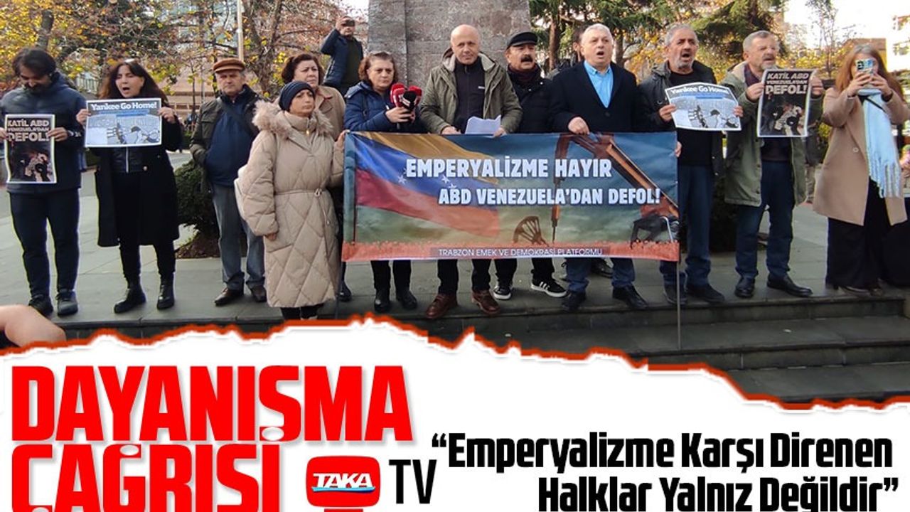 Trabzon Emek ve Demokrasi Platformu tarafından yapılan yazılı açıklamada, ABD’nin son dönemde Venezuela’ya yönelik politikaları sert ifadelerle eleştirildi. Açıklamada, ABD’nin küresel ölçekte yaşadığı ekonomik ve siyasal krizleri aşmak için uluslararası hukuku ihlal eden savaş ve müdahale politikalarına yöneldiği savunuldu.