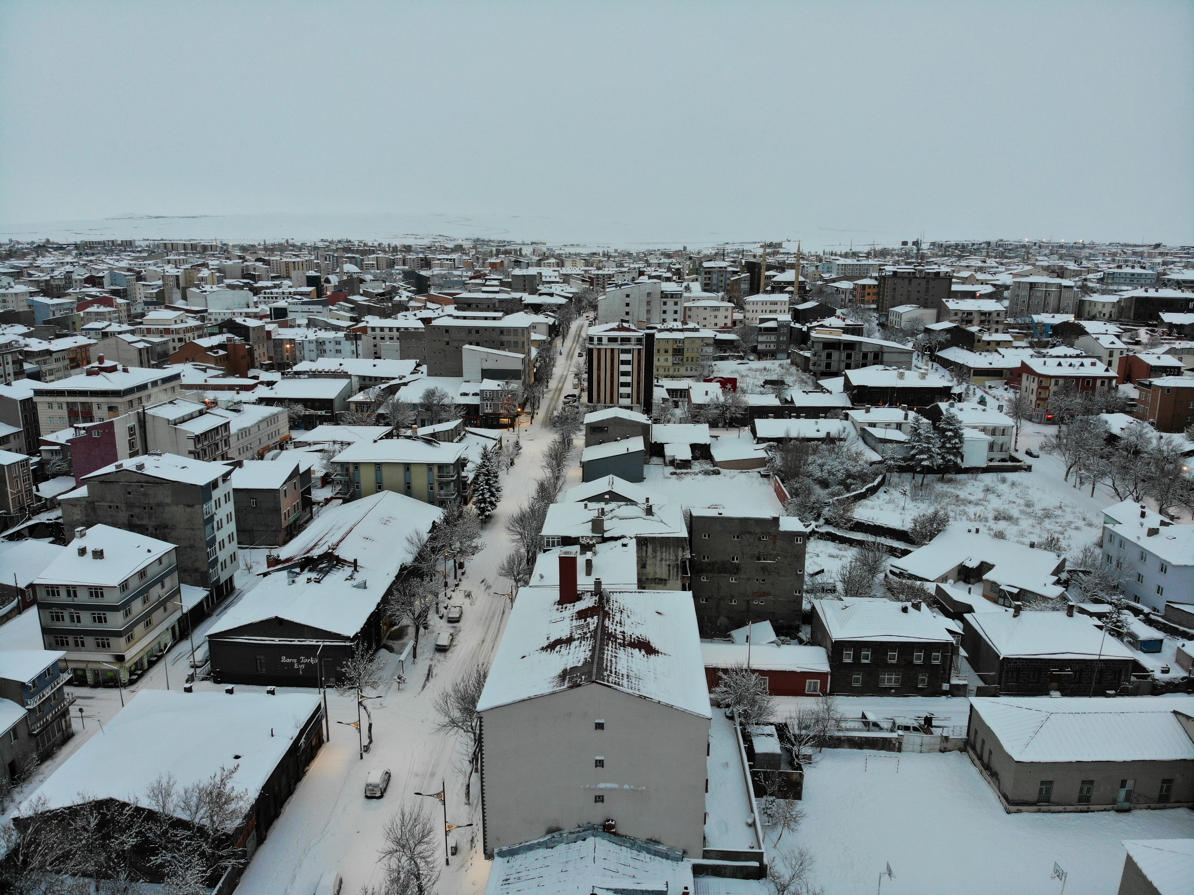 Kars'ta son 15 yılın en yoğun kışı yaşanıyor. Kentte 2 gündür yaşanan bahar havası yerini kar yağışına bıraktı. Gece sabaha doğru başlayan kar yağışı kısa sürede etrafı beyaza bürüdü. Beyaza bürünen Kars havadan görüntülendi.