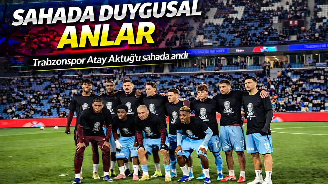 Karşılaşma öncesinde sahaya çıkan Trabzonsporlu oyuncuların üzerindeki tişörtler, sadece bir görsel değil, aynı zamanda kulüp hafızasının bir yansımasıydı. Atay Aktuğ’un fotoğrafının yer aldığı tasarım, hem futbolcular hem de taraftarlar için güçlü bir anlam taşıdı.
