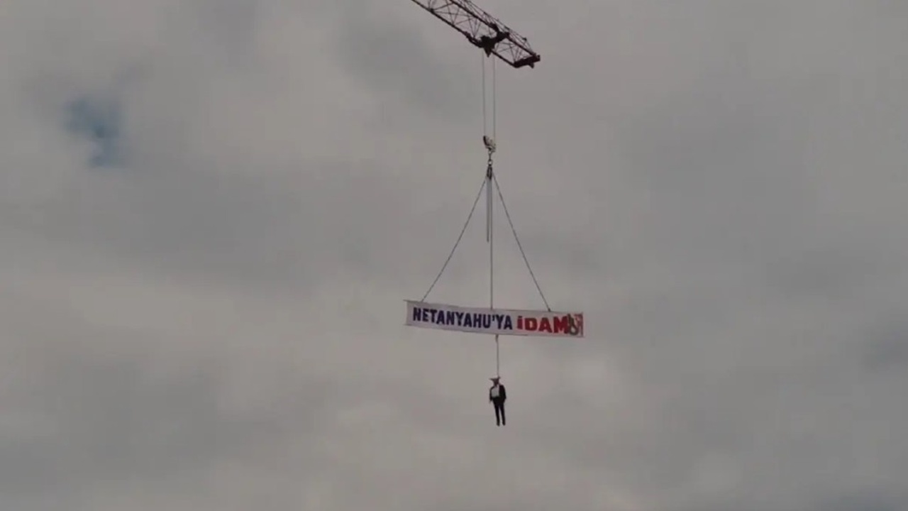 Trabzon’un Çömlekçi Mahallesi’nde yapımı devam eden bir inşaatta, vince asılan maket kısa sürede gündem olmuştu. Üzerinde İsrail Başbakanı Binyamin Netanyahu’ya idam çağrısı içeren pankart bulunan maket, vatandaşların tepkisini gözler önüne serdi. İsrail basını da konuyu yakından takip etti. İsrail basınında yer alan haberde, “Karadeniz kıyısındaki Trabzon şehrinde, Netanyahu'nun suretinde bir kuklanın boynundan dev bir vinçle asıldığı ve üzerinde "Netanyahu'ya idam cezası" yazılı bir pankartın bulunduğu görüldü. Performansın yaratıcısı, bunun "Gazze'deki savaş suçlarına dikkat çekmek" amacıyla yapıldığını söyledi. Erdoğan bir başka konuşmasında, "Türkiye'nin müdahalesi olmadan barış sağlanamaz" dedi. Türkiye'de Binyamin Netanyahu'ya yönelik kışkırtmalar tırmanıyor ve Trabzon semalarında, Netanyahu'nun suretinde bir kuklanın bir vinçle ipe asılarak öldürüldüğü ve üzerinde "Netanyahu'ya idam cezası" yazılı bir pankartın bulunduğu dev bir performans sergilendi.