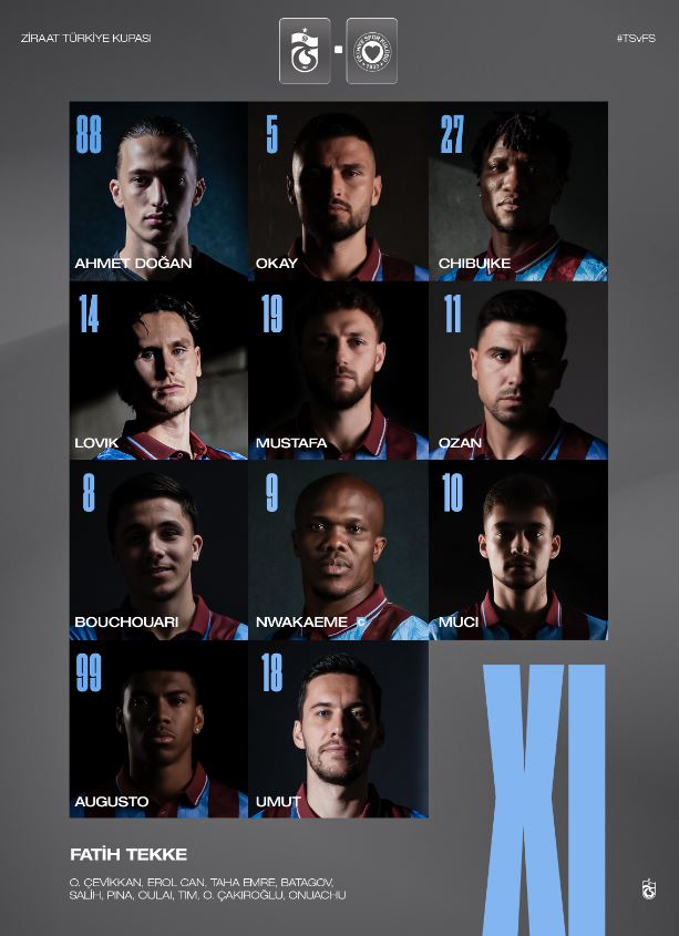 Teknik direktör Fatih Tekke yönetimindeki Trabzonspor, ligde İstanbulspor karşısında attığı 6 golle yakaladığı moral ivmesini kupaya da taşımayı hedefliyor. Grupta şu ana kadar 3 puanı bulunan Bordo-Mavililer, Fethiyespor karşısında kazanarak puanını 6’ya yükseltmek ve liderlik yarışında güçlü bir konuma gelmek istiyor.