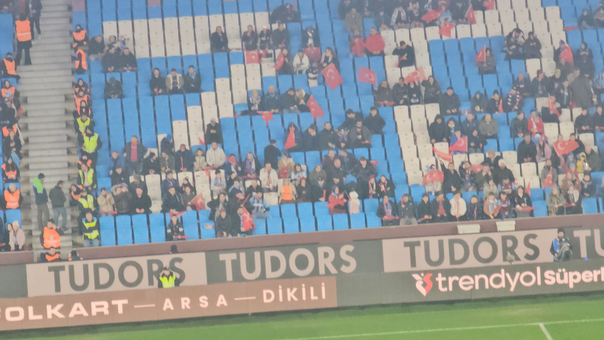 Süper Lig’in 19. haftasında oynanacak Trabzonspor–Kasımpaşa karşılaşması öncesinde Papara Park çevresinde anlamlı görüntüler ortaya çıktı. Trabzonspor taraftarları, geçtiğimiz günlerde Türk bayrağına yönelik gerçekleştirilen saldırıyı kınamak amacıyla bayraklarını yanlarına alarak stadyuma geldi. Bordo-mavili taraftarlar, maç öncesinde Türk bayraklarını coşkuyla sallayarak birlik ve beraberlik mesajı verdi. Ortaya konan bu duruş, sadece bir futbol karşılaşması öncesi değil, aynı zamanda toplumsal bir tepki ve hassasiyetin yansıması olarak dikkat çekti. Taraftarların sergilediği bu tavır, Papara Park çevresinde duygusal anların yaşanmasına neden oldu.