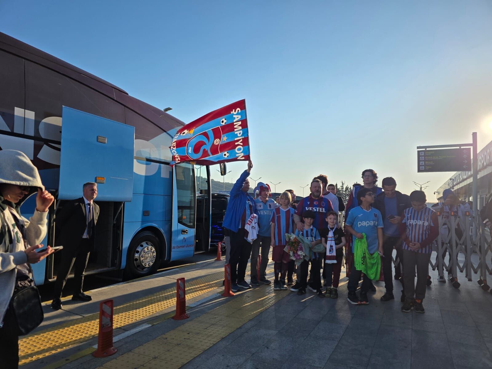 Öte yandan havalimanında kafileyi uğurlayan bordo-mavili taraftarlar, teknik direktör Fatih Tekke ve futbolcularla fotoğraf çektirdi.