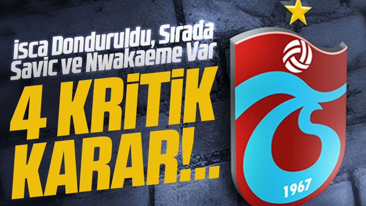 Kadrosunda yabancı oyuncu kontenjanında büyük sorun yaşayan Trabzonspor peşi sıra formül peşinde. Bordo-Mavililerde Visca'nın sözleşmesi dondurulurken, aynı yöntemin Savic ile de yaşanacağı kaydediliyor. Asıl önemli gelişme Nwakaeme'de yaşandı. Trabzonspor'un oyuncu ile görüşme yaptığı ve Nwakaeme'nin teknik ekiş veya idari heyette görev alarak sözleşmesinin fesih yoluna gidileceği fikri üzerinde uzlaşıldı.