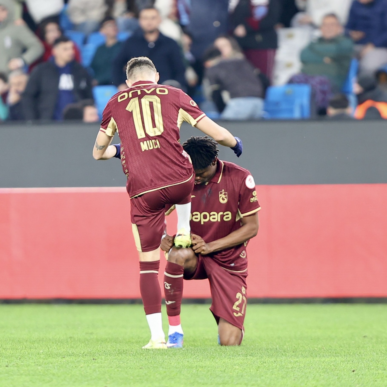 Trabzonspor’un devre arası transferlerinden Chibuke Nwaiwu gol sonralarında gol atan oyunculara yönelik krampon silme görüntüleri ile dikkat çekiyor. Nijeryalı oyuncu zaman geçtikçe formunu yükseltirken yavaş yavaş taraftarın da gözüne girmeyi başarıyor. Nwaiwu gol sonralarında golü atan oyuncuların kramponlarını silerek futbolda unutulan adetleri hatırlatıyor. Daha önce Muçi ve Augusto’nun karamponlarını silen oyuncu kupa maçında bu kez Nwakaeme’nin kramponlarını sildi.