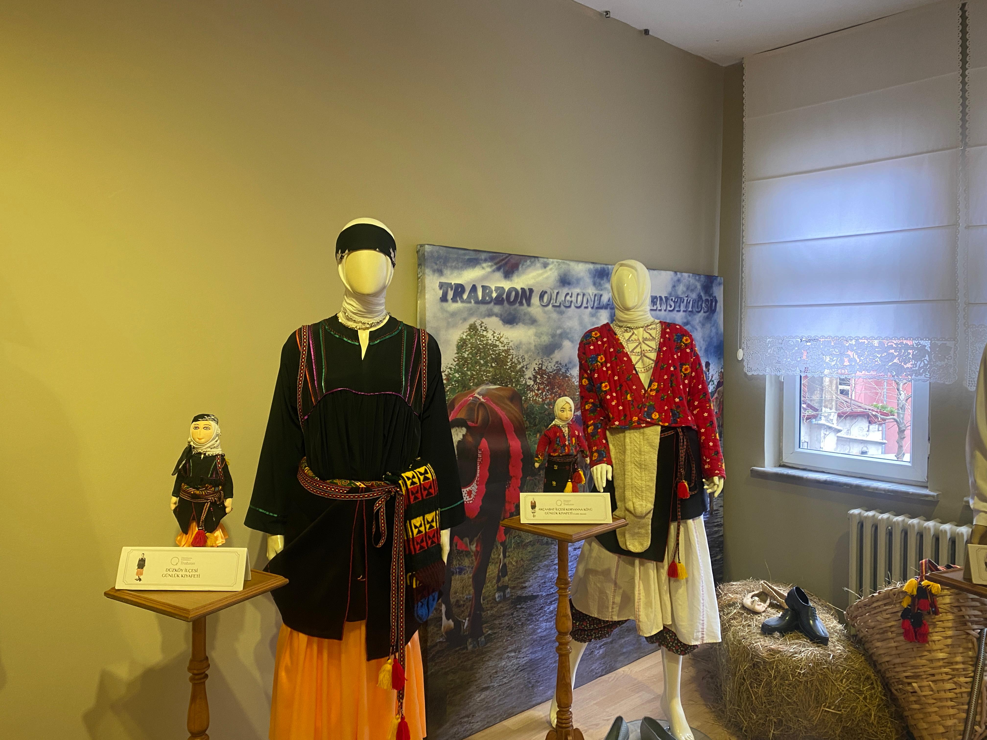 Trabzon Olgunlaşma Enstitüsü tarafından, Milli Eğitim Bakanlığı’nın “Dönem Sonu Kültür, Sanat ve Spor Faaliyetleri Haftası” kapsamında hazırlanan yöresel kıyafet sergisi ziyaretçilerin beğenisine sunuldu. Enstitü salonunda açılan sergide, Trabzon ve Karadeniz Bölgesi’ne ait 100-150 yıl öncesine uzanan geleneksel kıyafetler yer aldı.