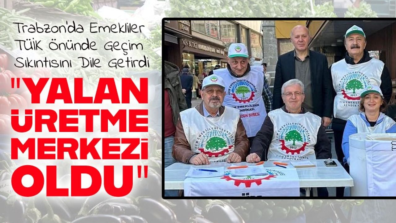 Tüm Emeklilerin Sendikası Trabzon İl Temsilciliği, artan hayat pahalılığı ve düşük maaşlara karşı sesini yükseltti. Türkiye İstatistik Kurumu’nun (TÜİK) Trabzon’daki binası önünde toplanan emekliler, açıklanan enflasyon oranlarının gerçeği yansıtmadığını belirtti. Emekliler, “TÜİK’in masa başı verileriyle değil, pazarlardan yapılan ölçümlerle gerçek enflasyon hesaplanmalı” diyerek hükümete ve yetkililere çağrıda bulundu.