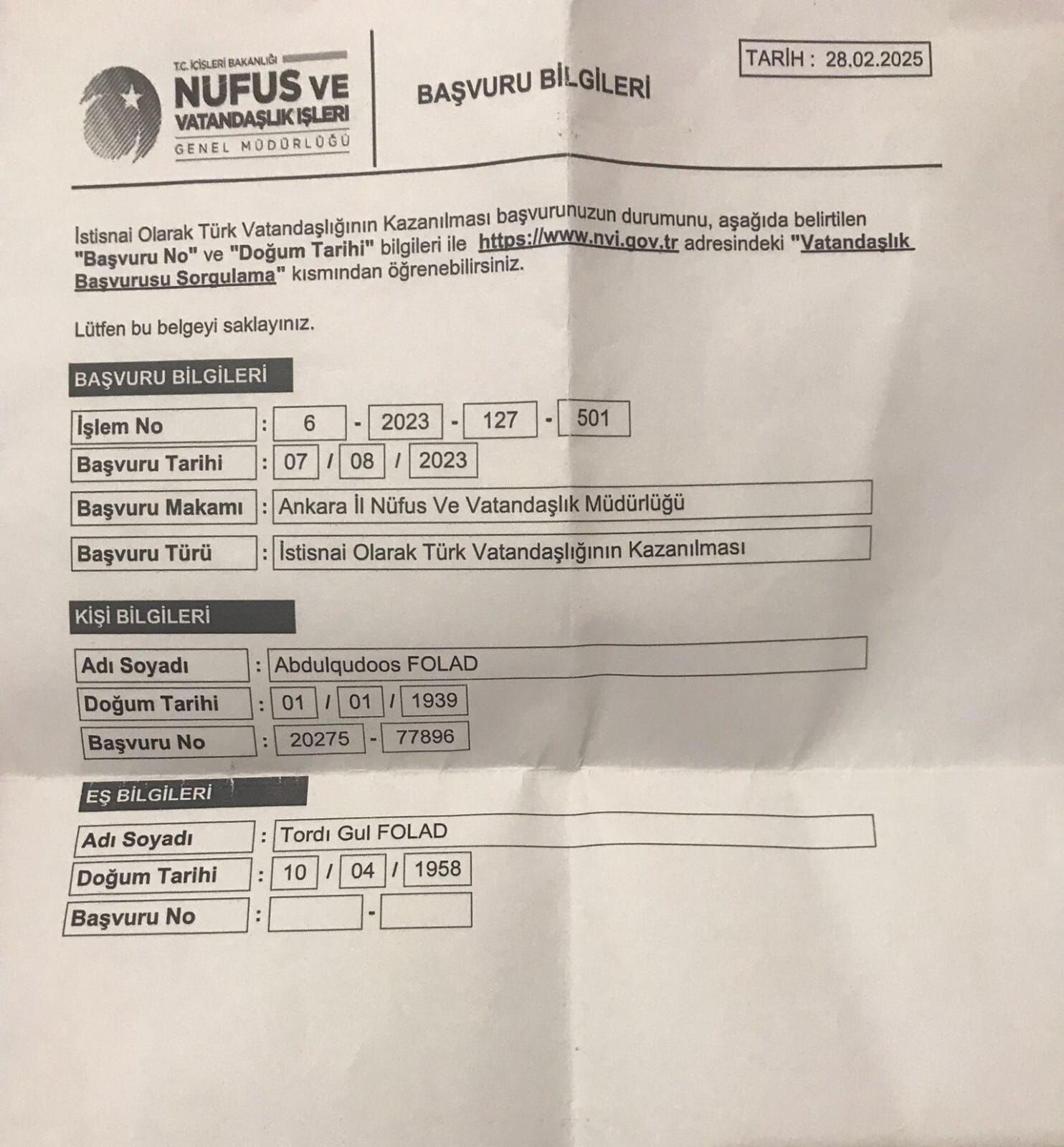 İleri yaşta olduğunu ve sağlık sorunları bulunduğunu dile getiren Folad, çocuklarının Türkiye’ye getirilmesini istedi. Folad, “Ailemin Türkiye’ye getirilmesi hem sağlık durumum hem de aile bütünlüğümüz açısından büyük önem taşıyor. Bu konuda destek bekliyorum” ifadelerini kullandı.