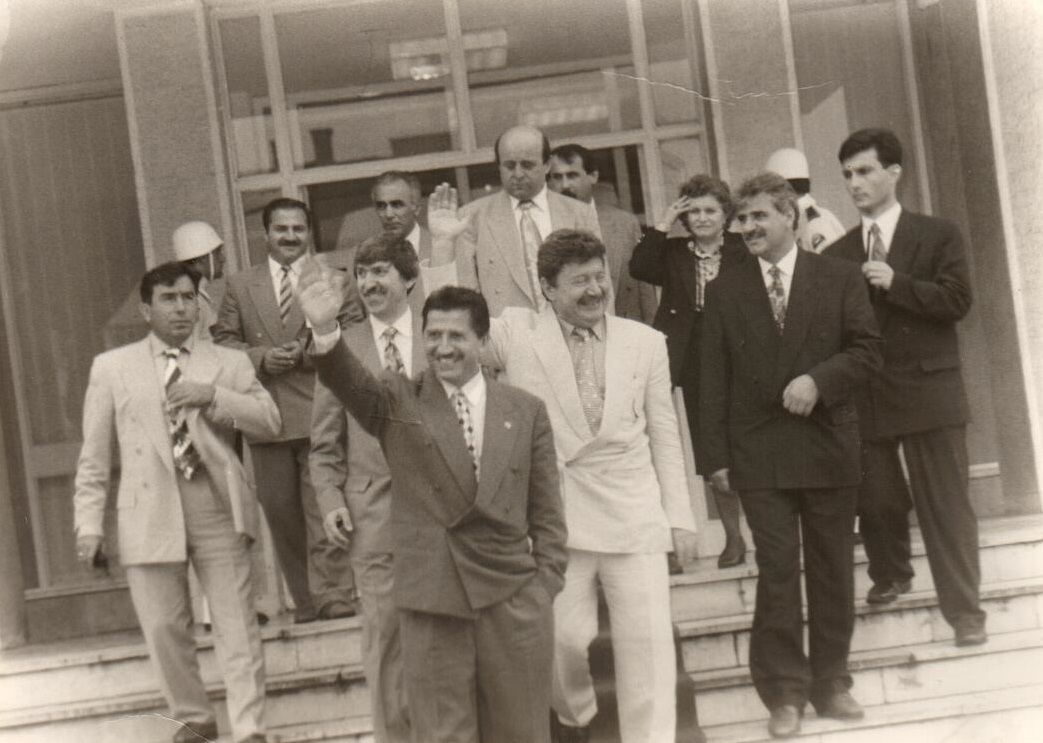 1-Trabzon Valiliği 1994. Milli Eğitim Bakanı Köksal Toptan, Devlet Bakanı Mehmet Ali Yılmaz ziyaretten çıkıyorlar ve vatandaşlara el sallıyorlar. Arsin Belediye Başkanı Turan Yılmaz, Çaykara Belediye Başkanı Aydın Kofoğlu da karenin içinde.