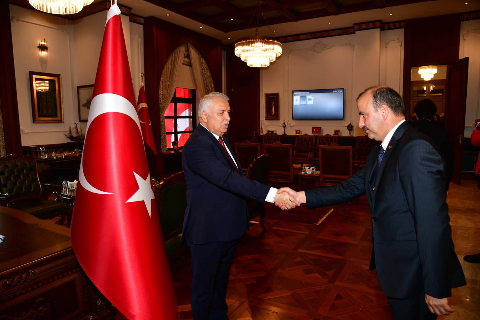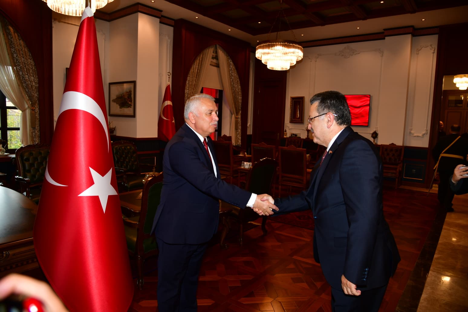 29 Ekim Cumhuriyet Bayramı kutlamaları kapsamında Trabzon Valiliği’nde anlamlı bir tebrikat töreni düzenlendi. Cumhuriyetimizin ilanının 102. yıl dönümünde gerçekleştirilen törende, Trabzon Valisi Aziz Yıldırım, kendisini ziyarete gelen il protokolünün bayram tebriklerini kabul etti.