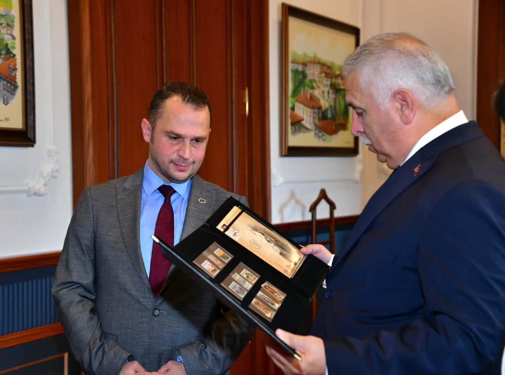 Ziyarette Vali Yıldırım’a, PTT tarafından “Türkiye Cumhuriyeti’nin Yüzüncü Yılı” temalı özel anma pulu ve ilkgün zarfı takdim edildi. Vali Yıldırım, bu anlamlı hediyeden dolayı teşekkür ederken, “Cumhuriyetimizin 100. yılına yakışan bu tür çalışmalar, kurumlarımızın tarihe olan saygısının en güzel örneklerindendir.” ifadelerini kullandı.