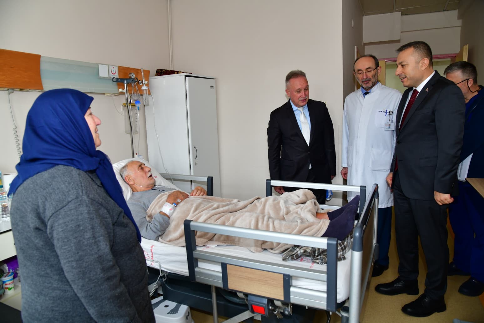 Vali Şahin, servisleri ve hasta odalarını tek tek gezerek tedavi gören hastalarla birebir ilgilendi. Hastaların genel sağlık durumları hakkında bilgi alan Şahin, geçmiş olsun dileklerini iletirken, hasta yakınlarının görüşlerini de dinledi. Ziyaret sırasında sağlık çalışanlarına da teşekkür eden Şahin, özverili çalışmaları dolayısıyla tüm sağlık emekçilerini tebrik etti.