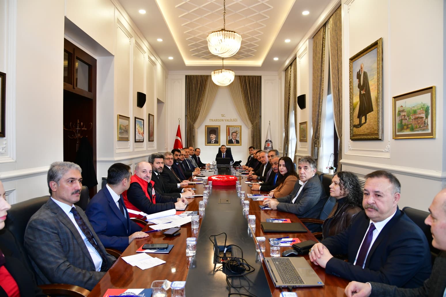 Vali Tahir Şahin başkanlığında Ramazan ayı süresince alınacak tedbirlerin değerlendirildiği kapsamlı bir koordinasyon toplantısı düzenlendi. Kamu güvenliğinden trafik düzenlemelerine, gıda denetimlerinden fahiş fiyat ve stokçulukla mücadeleye kadar birçok başlık masaya yatırıldı. Ramazan ayının huzur ve güven ortamında geçmesi amacıyla ilgili kurum müdürlükleri tarafından yürütülecek çalışmalar ele alındı. Toplantıda, özellikle denetimlerin artırılması, vatandaşların mağduriyet yaşamaması ve manevi atmosfere uygun organizasyonların planlanması konularında detaylı değerlendirmeler yapıldı.