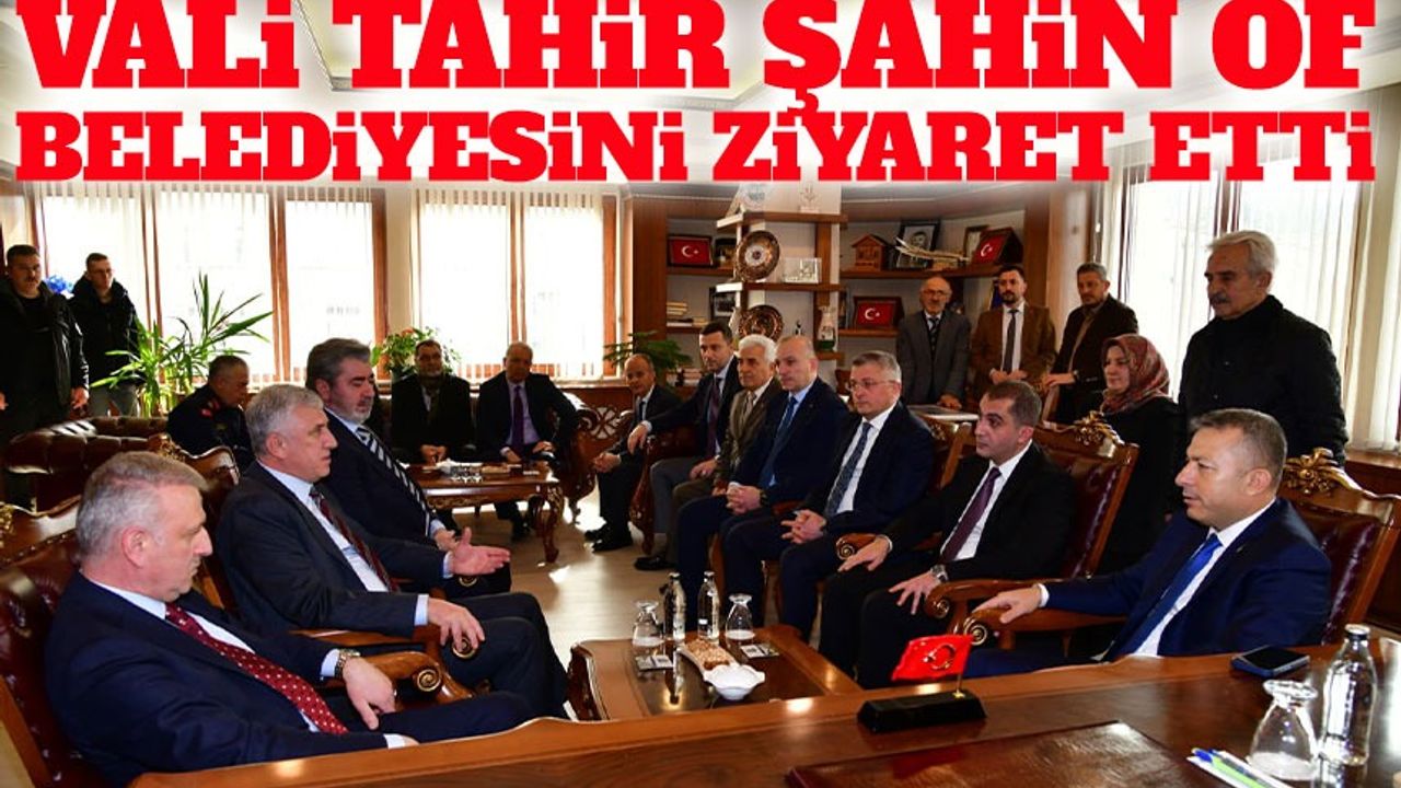 Vali Tahir Şahin’in Of Belediyesini ziyareti, üst düzey katılımla gerçekleşti. Ziyarette Cumhurbaşkanı Başdanışmanı Oktay Saral, İl Jandarma Komutanı B. Murat Yakın, İl Emniyet Müdürü Ali Loğoğlu, Sahil Güvenlik Doğu Karadeniz Grup Komutanı Aytaç Bayırlı ve Kaymakam Eşref Akçam da hazır bulundu.