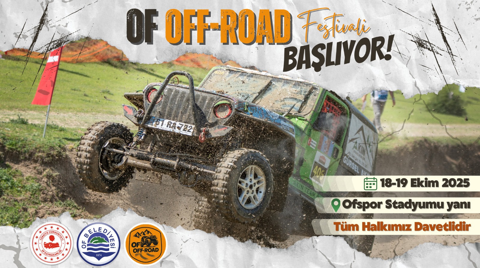 Of'ta ilk kez düzenlenecek Off-Road Festivali, 18-19 Ekim'de ulusal ve uluslararası katılımcılarla adrenalin dolu bir deneyim sunacak. Of'ta bu yıl ilk kez gerçekleştirilecek olan Off-Road Kamp ve Off-Road Festivali ile hem otomobil hem de doğa tutkunlarına heyecan dolu anlar yaşatmaya hazırlanıyor. 18-19 Ekim 2025 tarihlerinde Ofspor Stadyumu yanında yapılacak olan organizasyon, iki gün boyunca farklı etkinliklere ve zorlu yarışlara sahne olacak.