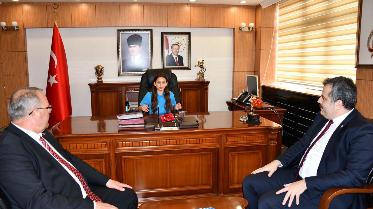 Vezirköprü Kaymakamlığı, Belediye Başkanlığı, Cumhuriyet Başsavcılığı ve İlçe Milli Eğitim Müdürlüğünde makamlar, öğrencilere bırakıldı.