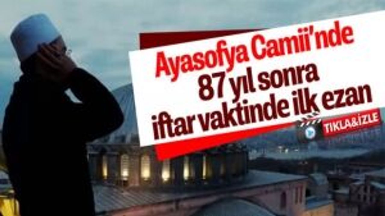 Ayasofya'nın cami olarak ibadete açılmasının ardından 87 yıl sonra iftar vaktinde ezan okundu.