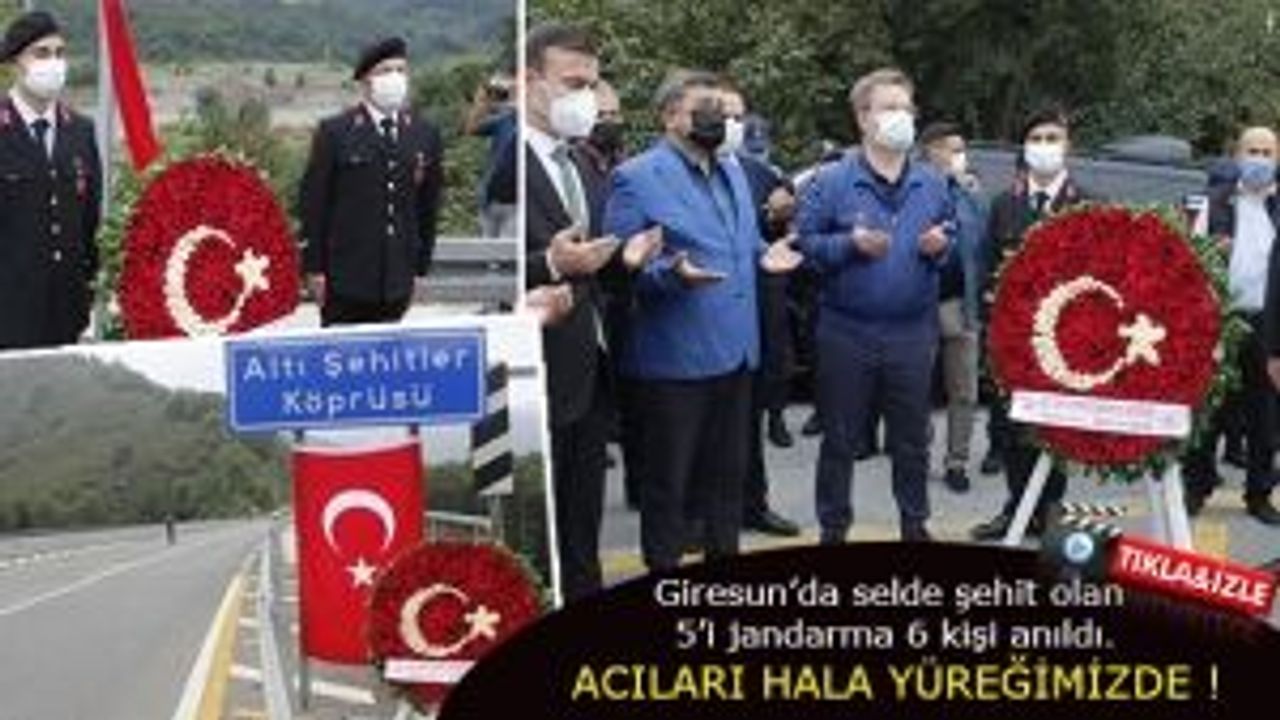 Giresun’da geçtiğimiz yıl 22 Ağustos’ta yaşanan sel felaketinde menfezin çökmesi sonucu şehit olan 5’i jandarma 1’i iş makinesi operatörü, 6 Şehitler Köprüsü'nde düzenlenen törenle anıldı.