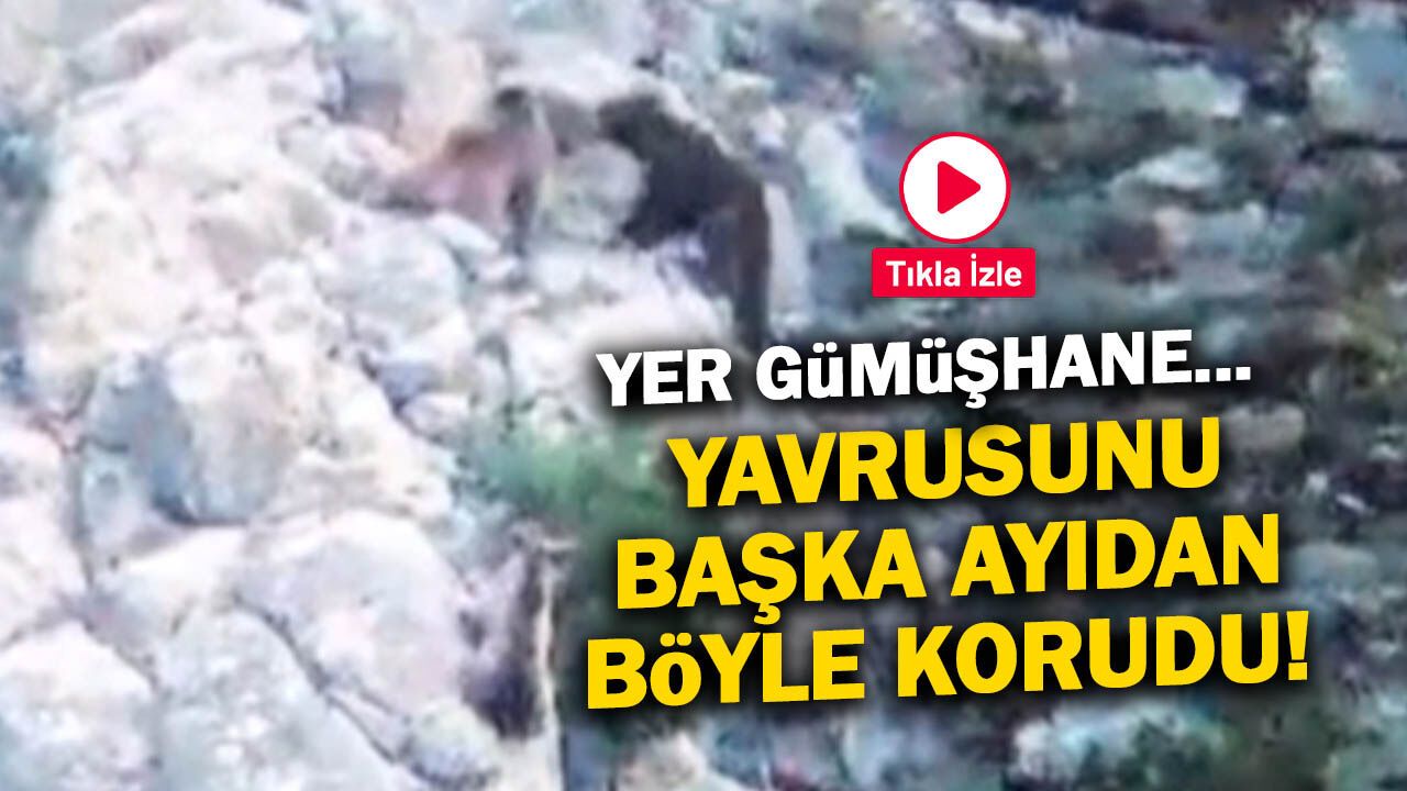 Gümüşhane Gökdere köyünde anne ayının yavrusunu korumak için başka bir ayıya saldırdı. O anlar kameralara yansıdı.
