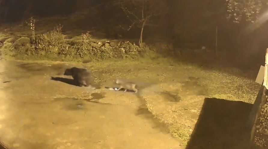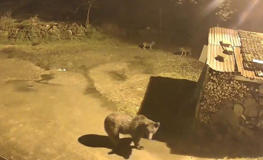 Arhavi ilçesine bağlı Dik Yamaç köyünde bir evin güvenlik kamerasına yansıyan görüntülerde, bir ayının köy içinde dolaşarak yiyecek aradığı görüldü. Görüntülerde ayının ardından iki tilkinin de hareket etmesi ilginç anlar oluşturdu.
