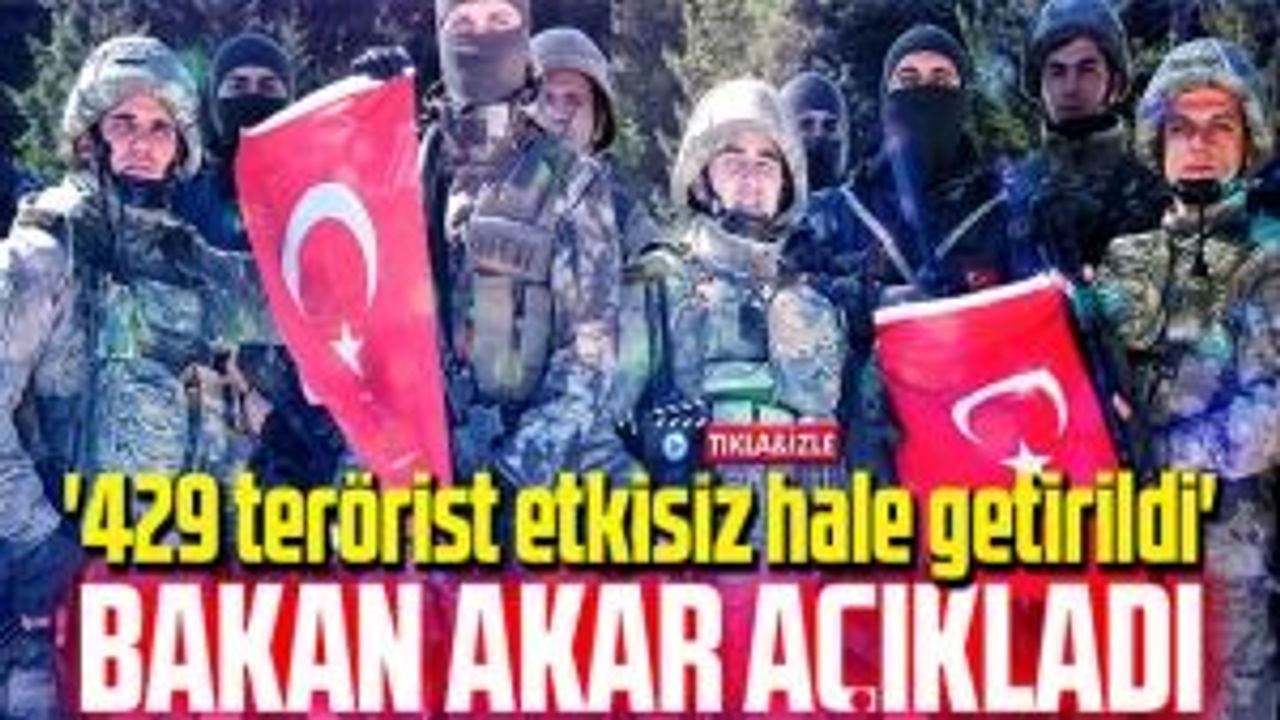 Bakan Akar, "Mehmetçik tarafından 540'dan fazla sığınak, mağara temizlendi. Teröristlerin yerleştirdiği bin 808 mayın ve el yapımı patlayıcı imha edildi. Şu ana kadar 429 terörist etkisiz hâle getirildi" dedi.