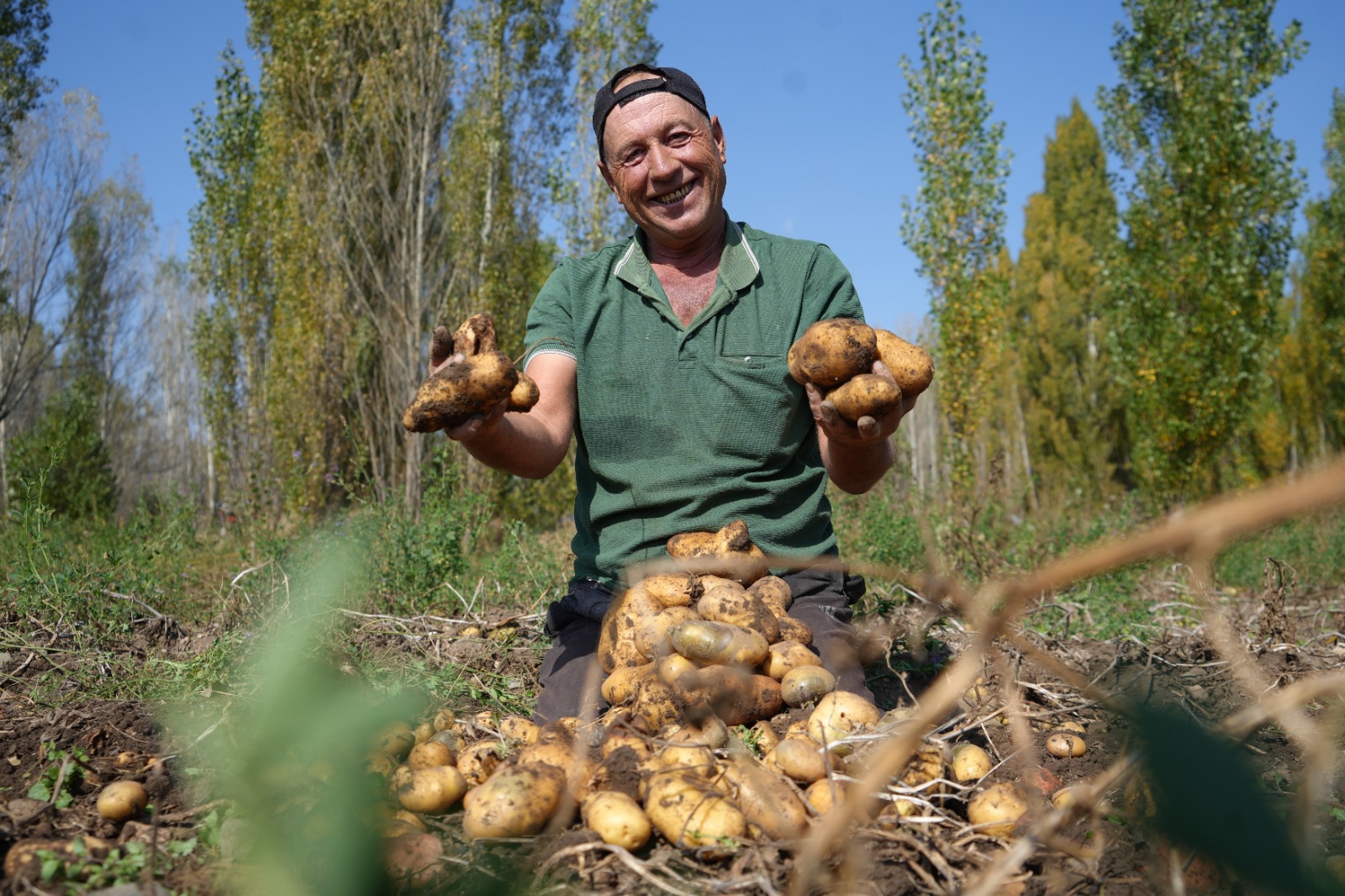 Patatesleri tarlada yaktığı ateşte pişirerek ailesiyle birlikte tadına bakan Sancar, doğayla iç içe geçen üretim sürecinden duyduğu mutluluğu dile getirdi.