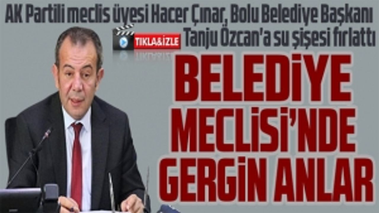 AK Partili meclis üyesi Hacer Çınar, Bolu Belediye Başkanı Tanju Özcan'a su şişesi fırlattı