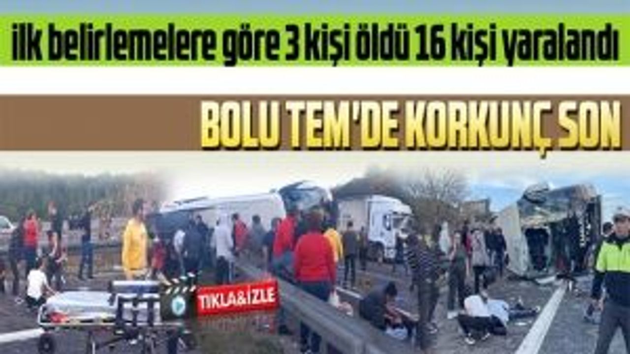 Bolu Valisi Erkan Kılıç, TEM Otoyolu Bolu geçişinde şehirlerarası yolcu otobüsünün devrilmesi sonucu meydana gelen kazada 3 kişinin hayatını kaybettiğini, 16 kişinin yaralandığını açıkladı.