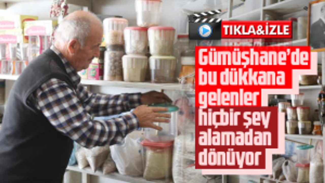 Gümüşhane’de yaşayan 80 yaşındaki Halil İbrahim Cahit Erdoğan babasından kalan dükkanda babasının öldüğü 1971 yılından bugüne onun anısını yaşatmak için kalan hiçbir ürünü satmıyor.