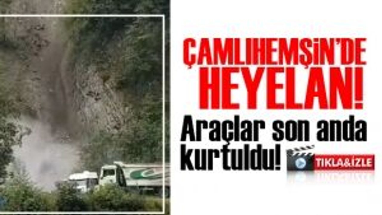Çamlıhemşin-Ardeşen yolu üzerinde 3. kilometrede bulunan eski taş ocağında heyelan meydana geldi. Heyelan büyük kaya parçaları ağaçları da beraberinde getirdi. Heyelan sırasında yoldan geçen araçlar son anda kaya parçalarının altında...