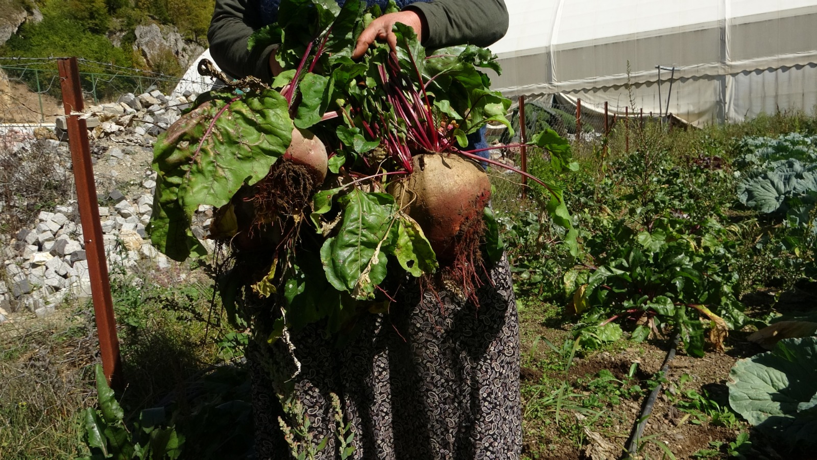 “Peziği kendi tarlamızda yetiştiriyoruz. Sap kısmından turşu yapıyoruz, kök kısmını ise hem haşlayarak yiyoruz hem de pekmez yapımında kullanıyoruz. Bu ürünleri korumak için topraktan yapılan kuyulara koyuyoruz. Verim düşük olsa da şükrediyoruz.”