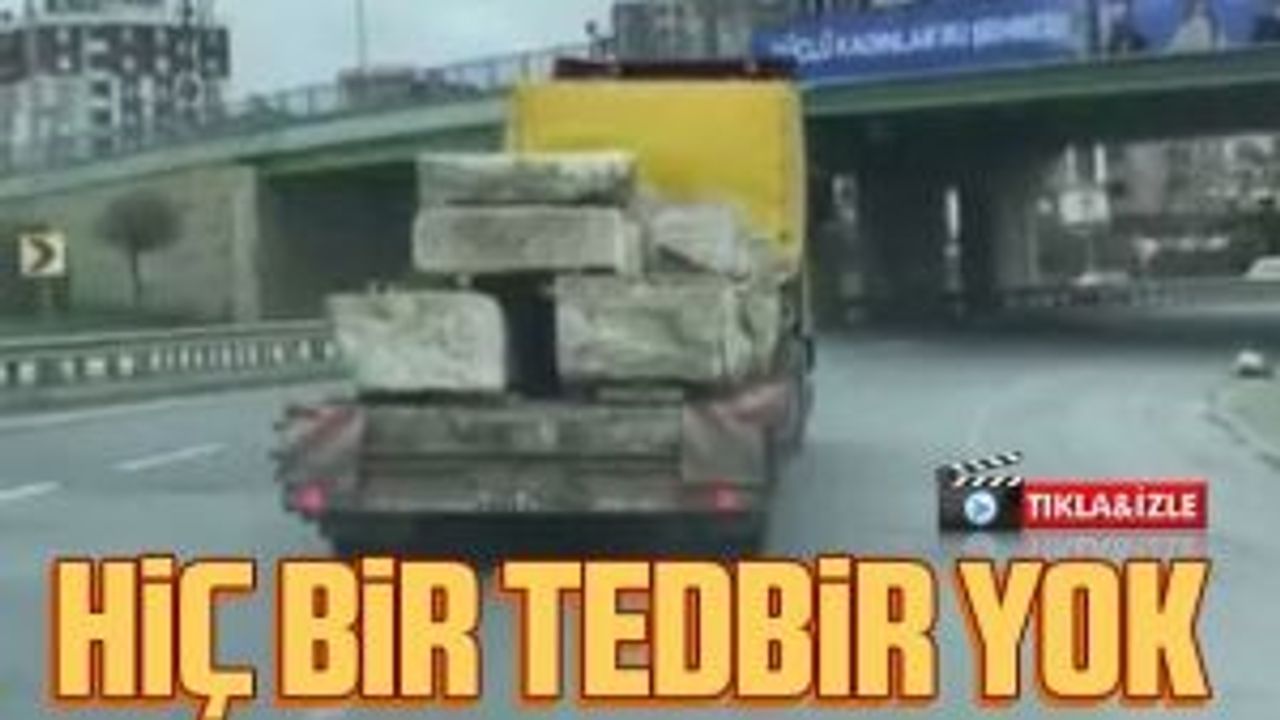 İSTANBUL Arnavutköy-Sultangazi yolunda iş makinesi taşımacılığında kullanılan bir TIR'ın üzerindeki taş yığınlarıyla hiçbir güvenlik önlemi almadan yaptığı yolculuk, cep telefonu kamerasına yansıdı.