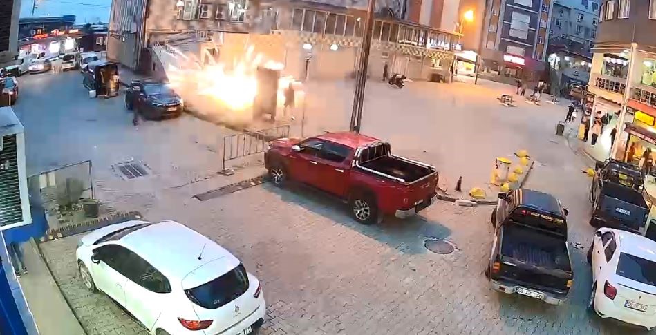 Yaşanan anlar çevredeki bir iş yerinin güvenlik kamerasına saniye saniye yansıdı. Görüntülerde havai fişeklerin yön değiştirerek cami girişine doğru patladığı ve vatandaşların hızla uzaklaştığı görülüyor.