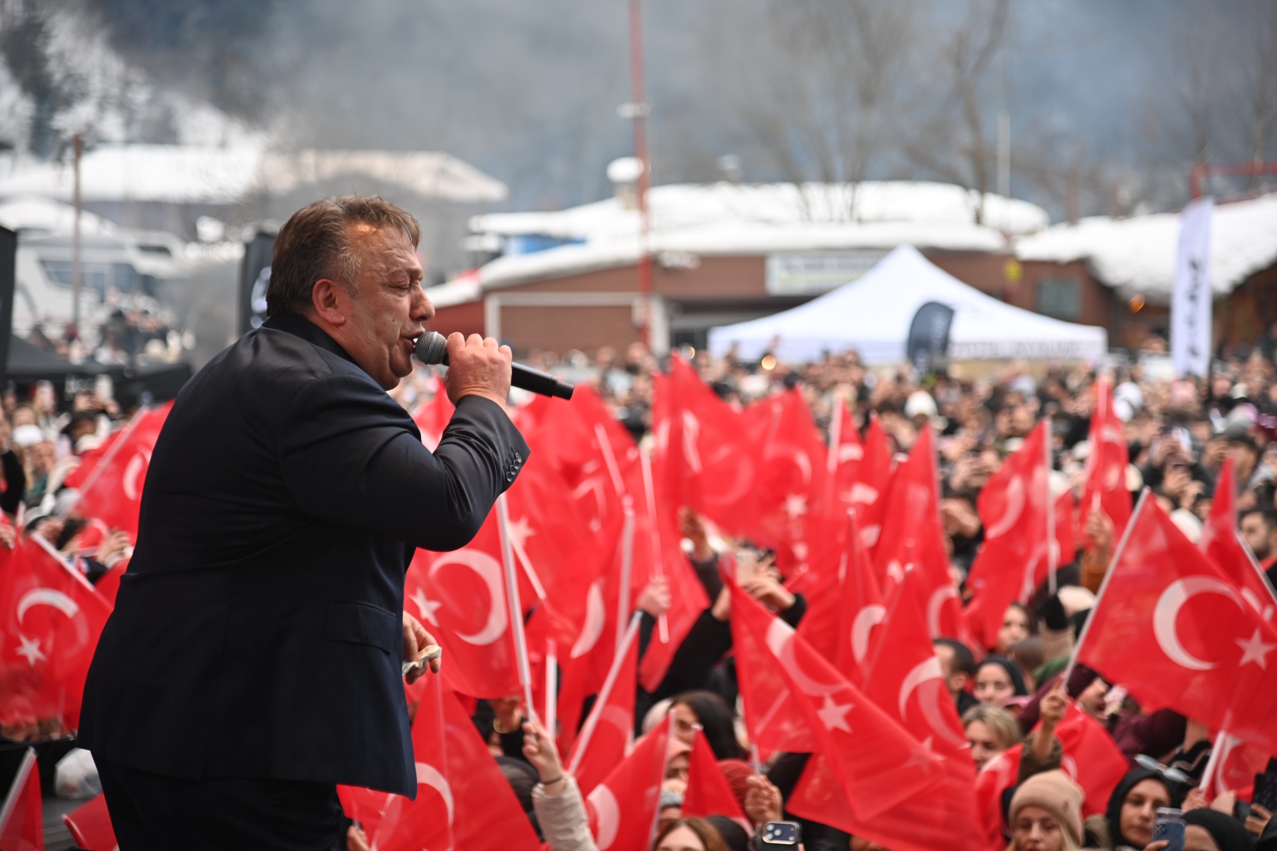 Trabzon Büyükşehir Belediyesi’nin öncülüğünde düzenlenen “Uzungöl Kış Festivali”, üçüncü gününde de tüm hızıyla sürdü. Şehir içinden ve şehir dışından çok sayıda vatandaşın yoğun ilgi gösterdiği festivalde, gün boyunca gerçekleştirilen etkinlikler katılımcılara keyifli anlar yaşattı. Festivalde Karadeniz’İn sevilen sanatçısı İsmail Türüt de sahne alırken Türüt’ün şarkılarına başlamasıyla Trabzonlular coştu.