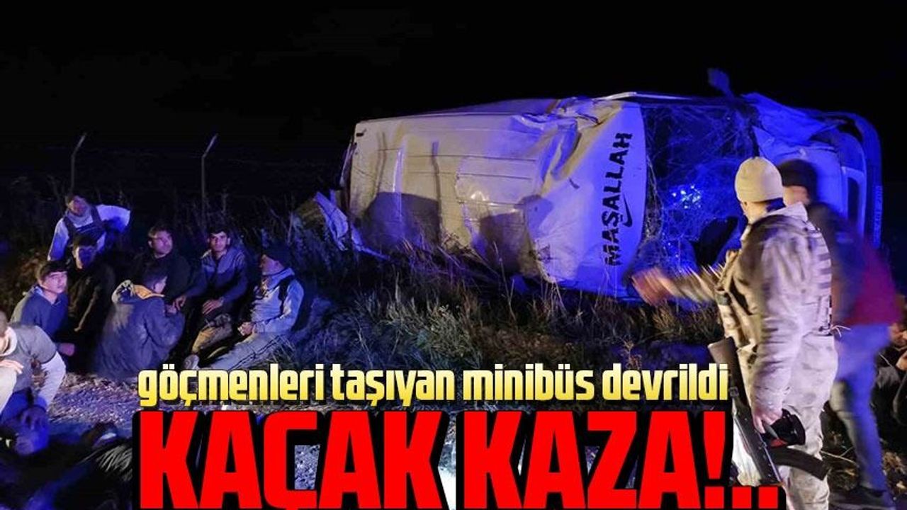 Kaçak göçmenleri taşıyan minibüs devrildi