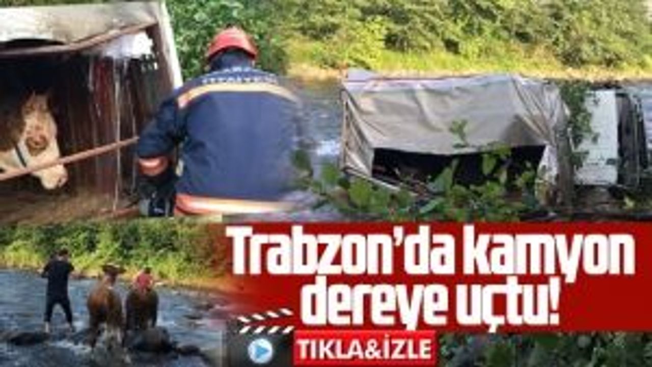 Trabzon'un Of ilçesinde büyükbaş hayvan taşıyan kamyonun dereye devrilmesi sonucu sürücü yaralandı.