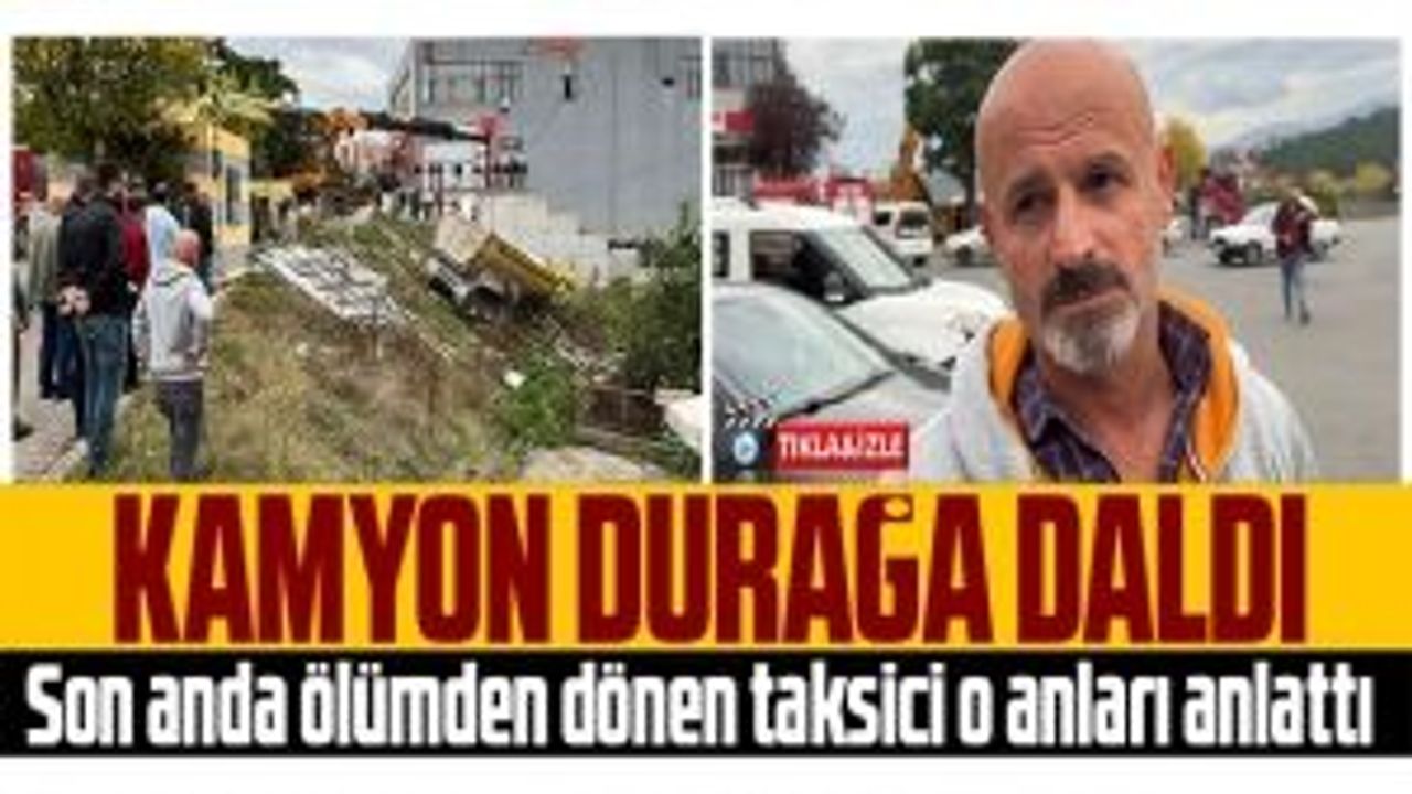 Düzce'de freni boşalan kamyonun çarptığı taksi durağında son anda yaptığı hamleyle canını kurtaran taksici, o anları anlattı.