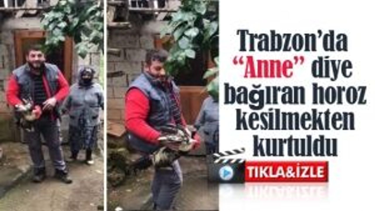 Olay Trabzon'un Ortahisar İlçesi Gölçayır Mahallesinde yaşandı. Sahibi tarafından kesilmek için kümesten alınan horoz 'Anne' diye bağırmaya başlayınca büyük bir şaşkınlık yaşandı. Yaşanan o anları kameraya alan hane halkı horozu kesmekten...