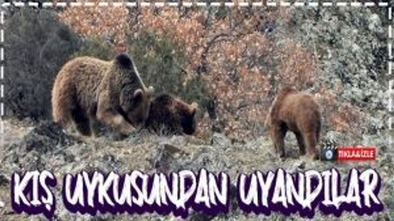 Oldukça yüksek ve sarp kayalıklar içerisindeki mağarasından 3 yavrusuyla birlikte çıkan dev anne ayının yavrularıyla...