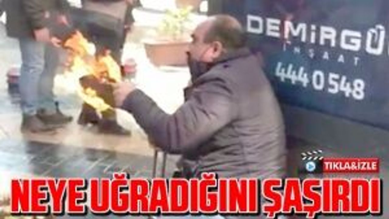 Şehrin en işlek yerinde ayakkabı boyacılığı yapan Murat Barbaros, boyadığı ayakkabıyı kurutmak için ateş yaktı. Bir anda alev alan ayakkabı...