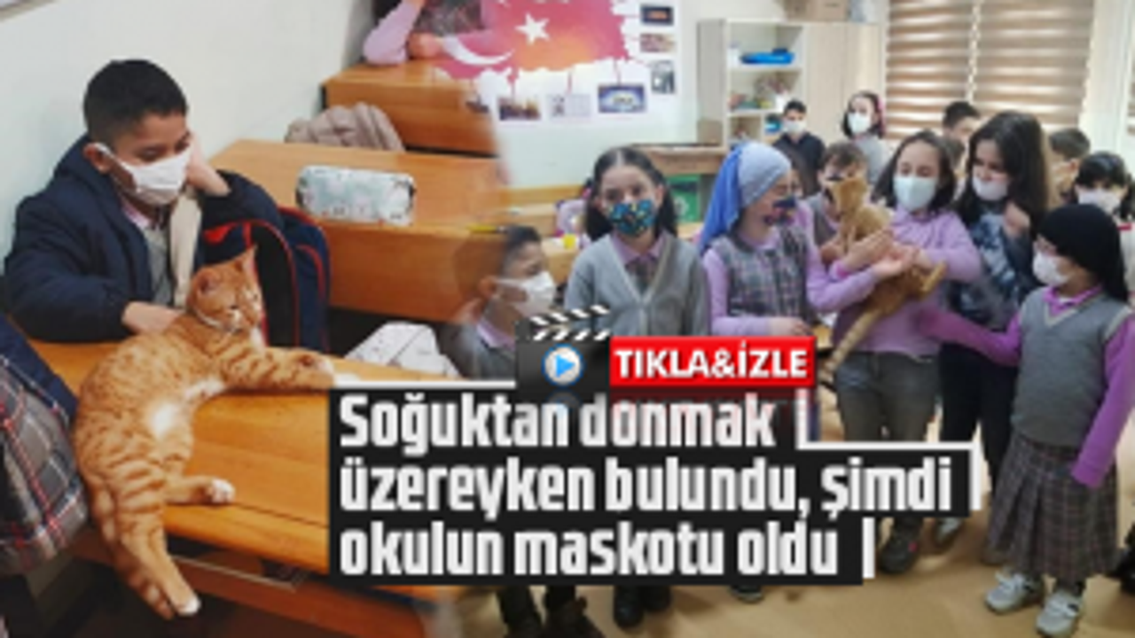 Trabzon’un Çaykara ilçesinde soğuktan donmak üzereyken bulunan kedi Zeki Bilge İlkokulu'nun adeta maskotu oldu.