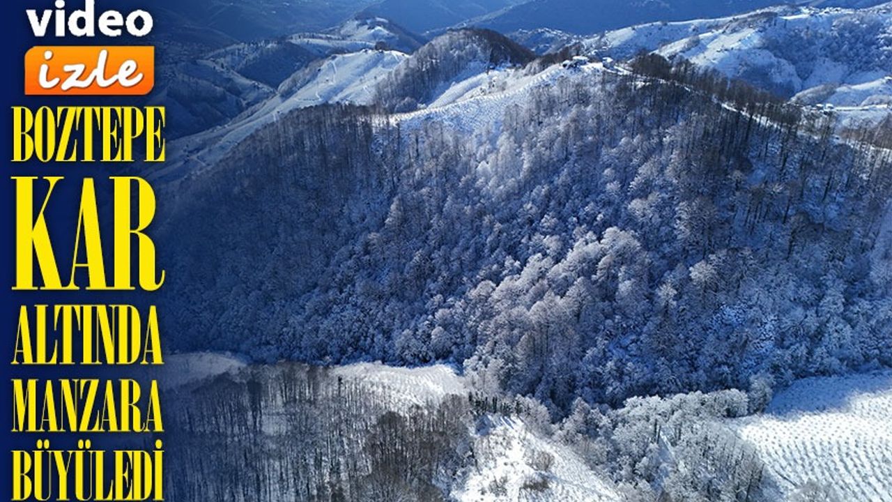 Boztepe’de kış başladı: Karla kaplı manzara dronla görüntülendi