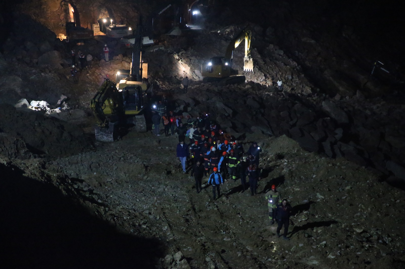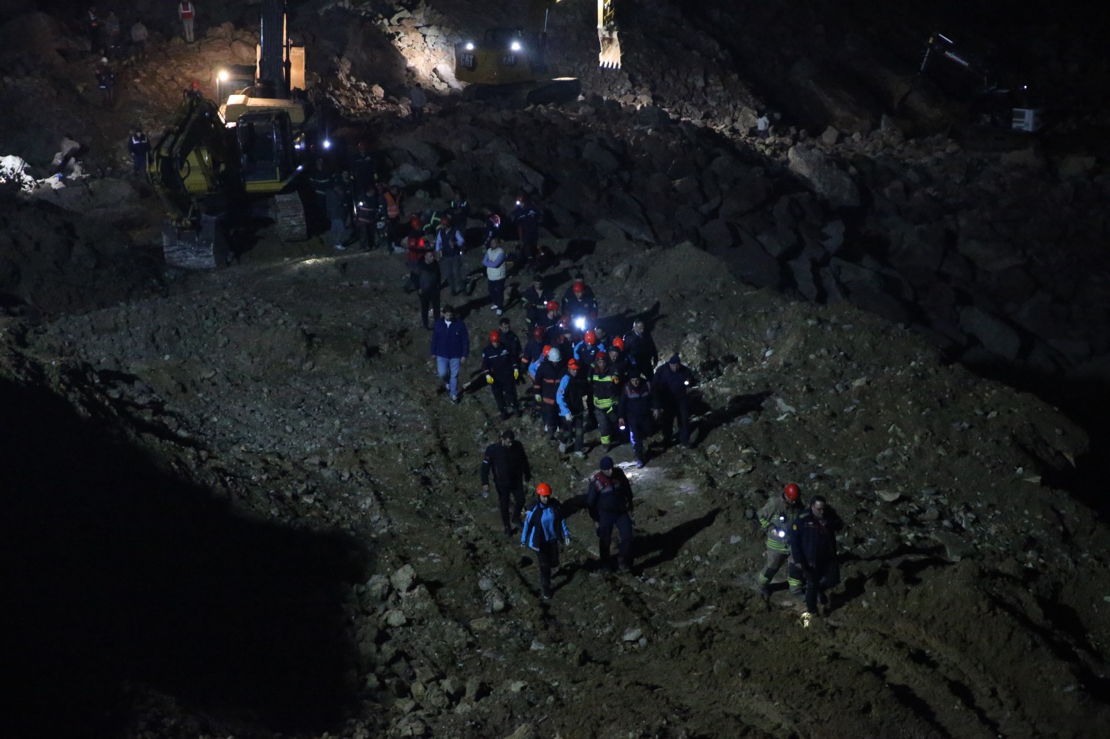 Göçük haberinin ardından bölgeye çok sayıda kurtarma ekibi ve iş makinesi sevk edildi. Vali Muammer Erol, olay yerinde yaptığı açıklamada, "Burayı bilen arkadaşlarımızın tarif ettiği noktada çalışan iş makineleri var. Yaklaşık 20 iş makinesi göçüğün kaldırılması için aktif çalışıyor," dedi. AFAD, UMKE, 112 Acil Sağlık ve jandarma ekiplerinin koordineli şekilde arama-kurtarma çalışmalarını sürdürdüğü bildirildi.