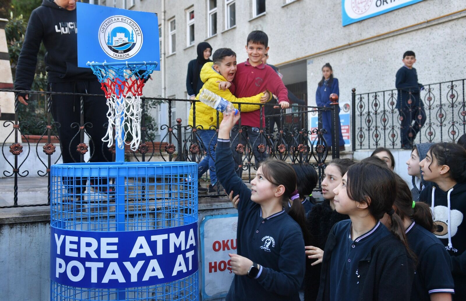 Ortahisar Belediyesi, sürdürülebilir çevre yönetimi ve sıfır atık hedefi doğrultusunda dikkat çeken bir projeyi hayata geçirdi. “Yere Atma, Potaya At” sloganıyla başlatılan uygulama kapsamında, geri dönüşümü teşvik eden basket potası şeklindeki PET şişe toplama üniteleri okullara yerleştiriliyor. Çocuklara geri dönüşüm bilincini eğlenceli bir yöntemle kazandırmayı amaçlayan proje, hem çevre duyarlılığını artırmayı hem de atıkların ekonomiye yeniden kazandırılmasını hedefliyor.