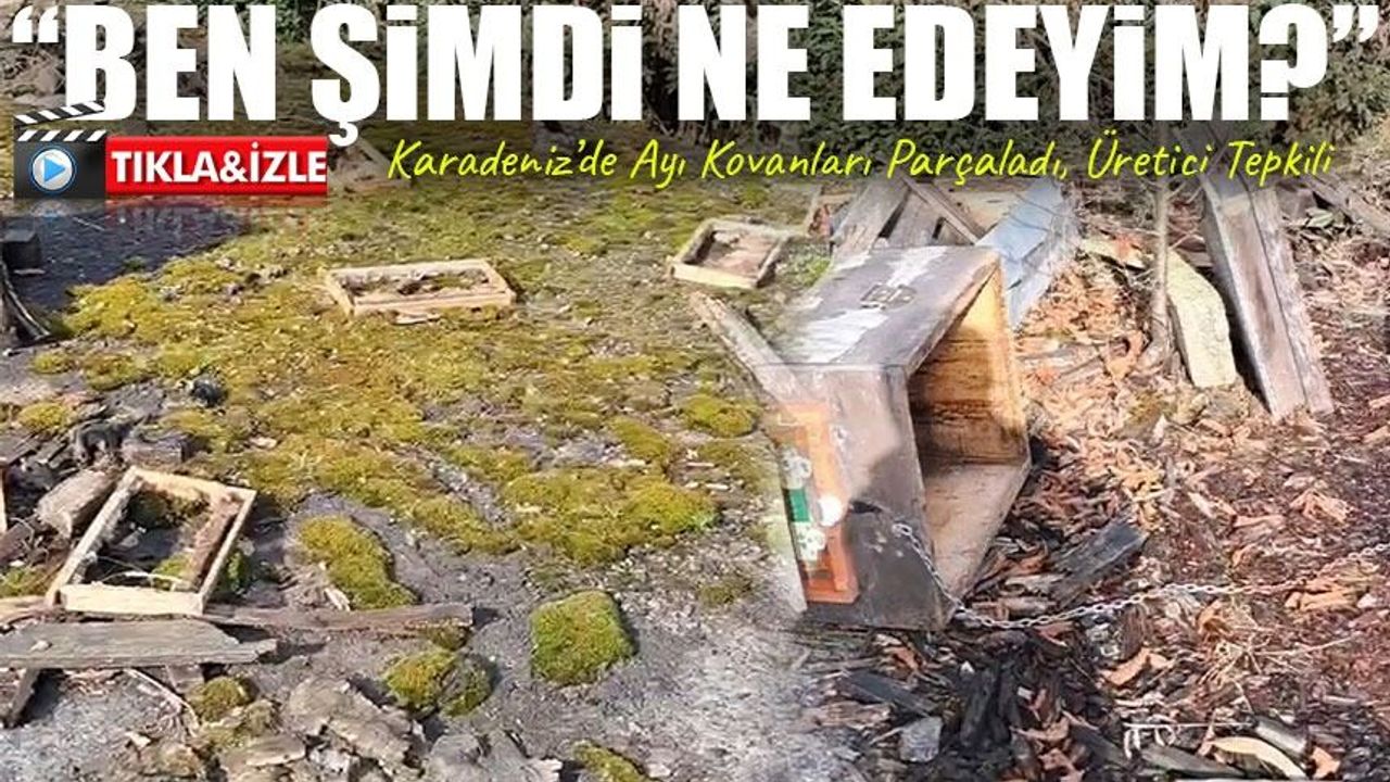 Rize'de bir ayı bal kovanlarını parçaladı, üretici Dursunali Kömürcü duruma “Ben şimdi ne edeyim?” diyerek tepki gösterdi. Ayı saldırısı sonrası yetkililere çağrı yaptı.