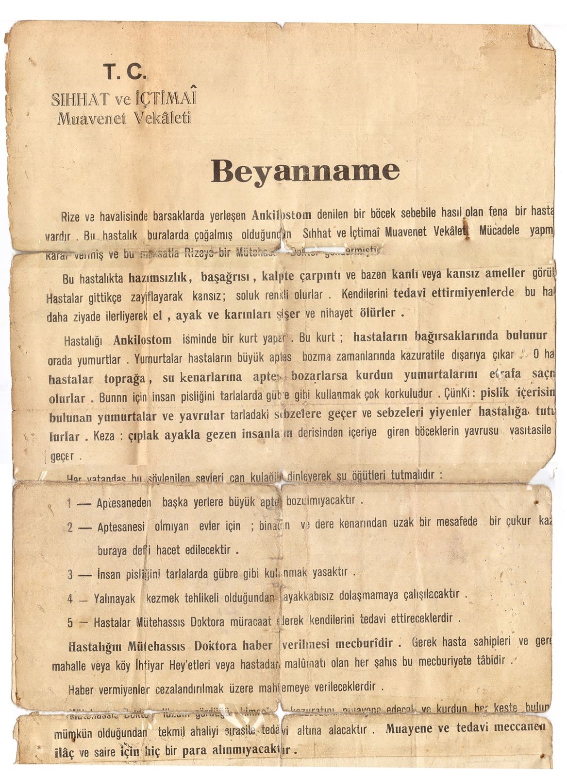 Cumhuriyet döneminde Rize’nin en büyük sağlık sorunlarından biri, halk arasında “kurt hastalığı” olarak da bilinen kancalı kurt hastalığı oldu. Topraktan bulaşan bu hastalık, bölgedeki gübre kullanım alışkanlıkları ve çıplak ayakla gezilmesi nedeniyle hızla yayıldı.